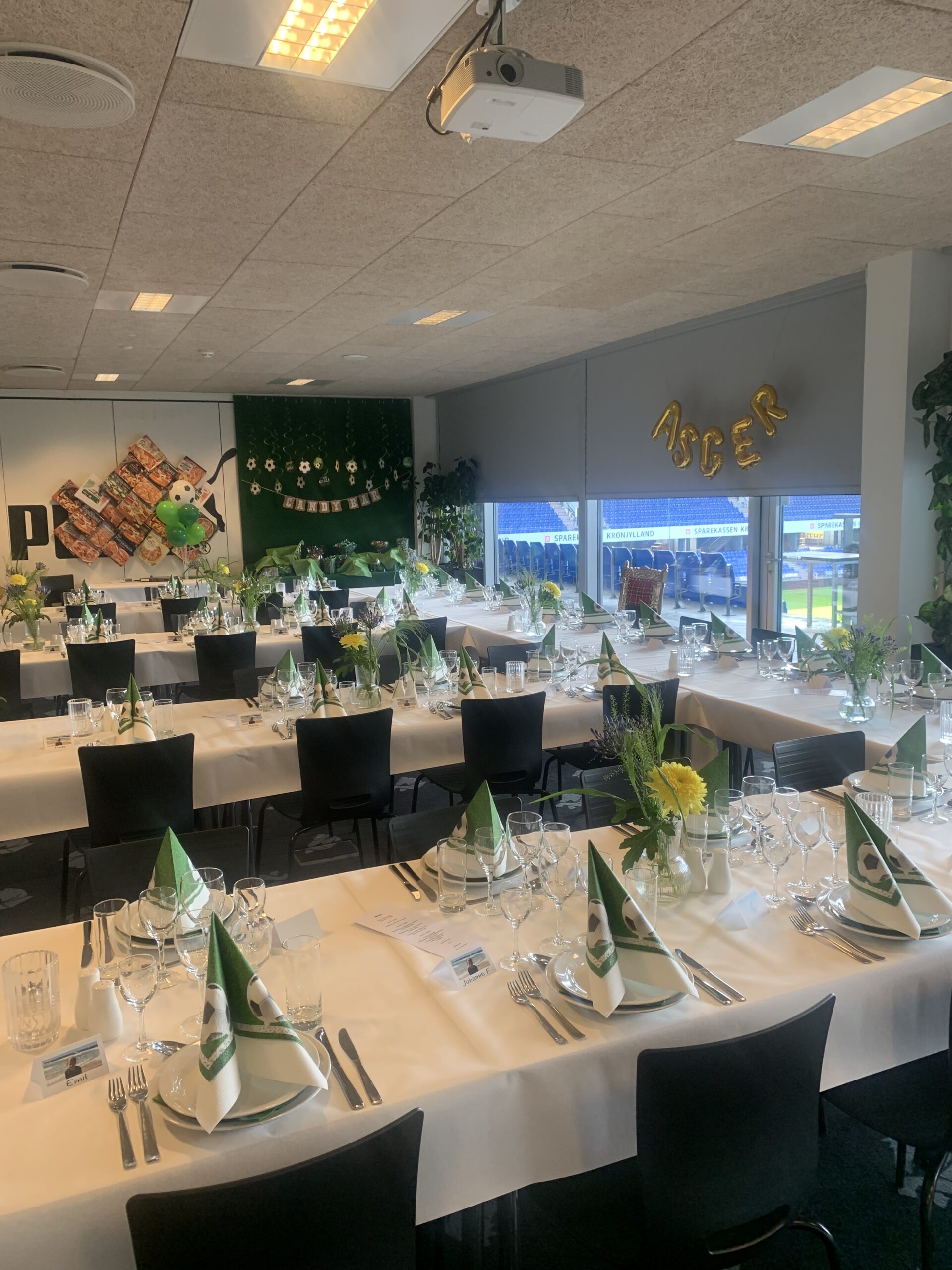 Med en unik beliggenhed og udsigt til stadion skaber vi rammer, der gør oplevelsen mindeværdig. I galleriet her på siden kan du få et indtryk af de mange måder, vores lokaler kan bruges på – fra stilfulde forretningsarrangementer til festlige selskaber.